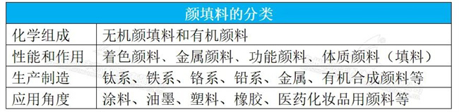 本文為了統(tǒng)一說法,我們將這兩者統(tǒng)稱為顏填料,可以按以下方式對顏填料進(jìn)行劃分。