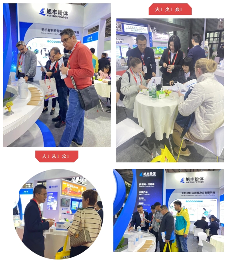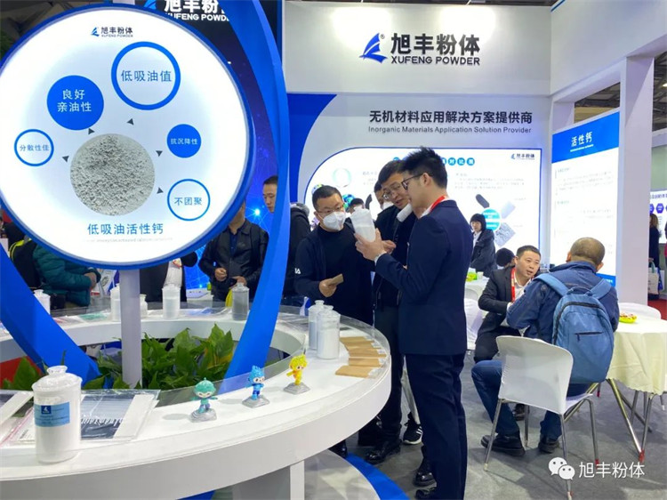 旭豐粉體本次展會(huì)依然充滿“新”意,以穩(wěn)重藍(lán)為主色調(diào),展位造型簡(jiǎn)約不失大氣,設(shè)有直觀的產(chǎn)品展示區(qū),并以專業(yè)的知識(shí)和服務(wù),吸引了行業(yè)大咖駐足參觀和互動(dòng)交流!