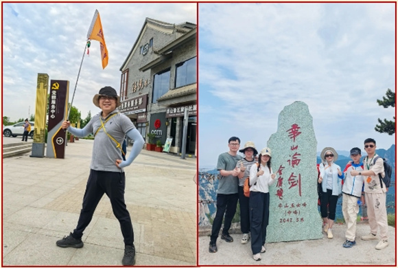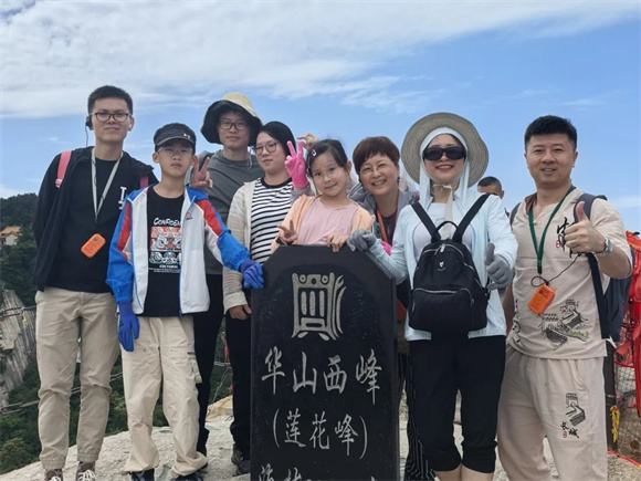 途中,大家或三兩好友結(jié)伴同行;或幾人前后跟隨;或駐足留念拍照,一覽華山全貌,不禁學(xué)著導(dǎo)游的口音玩笑一句:“這就是額給你們打下的江山??!”