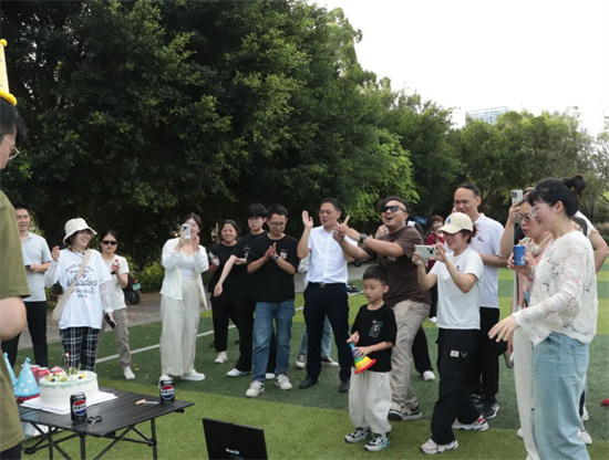 本次我們選擇來江濱公園足球場內(nèi)慶生,這里有開闊的場地,綠油油的草地,還有我們精心準(zhǔn)備的小游戲,大家都火力全開,互不相讓。