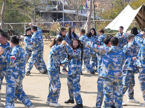 在進(jìn)行運(yùn)轉(zhuǎn)乾坤拓展項(xiàng)目前,大家在動(dòng)感的音樂中盡情熱舞,歡聲笑語回蕩在場地,每個(gè)人臉上都綻放著燦爛的笑容。