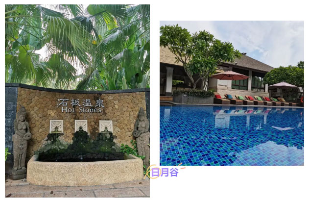 我們帶著滿心歡喜與期待,乘著秋日的涼風(fēng)來到了本次旅游首站點-----日月谷溫泉度假村。進入日月谷溫泉里我們暢泡著各式各樣、不同功效的溫泉,舒緩身心的疲憊。