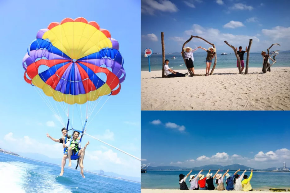 在蜈支洲島,靜可欣賞潔凈透明的海水,秀麗的風(fēng)景。動可乘坐豪華游艇出海、玩轉(zhuǎn)帆船、浮潛、垂釣、背上滑翔傘,翱翔藍天。