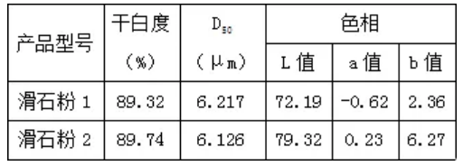 白度(whiteness)是表示物質(zhì)表面白色的程度,以白色含有量的百分率表示。非金屬礦物粉體的白度有干白度和濕白度之分,干白度是反映非金屬礦物粉體表觀的白色程度;濕白度是反映非金屬礦物粉體在油性介質(zhì)中,還原粉體原礦色相后的白色程度。故在實(shí)際應(yīng)用過程中,我們會(huì)發(fā)現(xiàn),兩支粉體的干白度檢測(cè)結(jié)果接近,但生產(chǎn)出來的成品顏色卻完全不同。為此,我司進(jìn)行了如下實(shí)驗(yàn):選擇兩支干白度比較接近的滑石粉,按同一配方比例填充于PET(聚對(duì)苯二甲酸乙二醇酯),粉體檢測(cè)結(jié)果詳見下表。